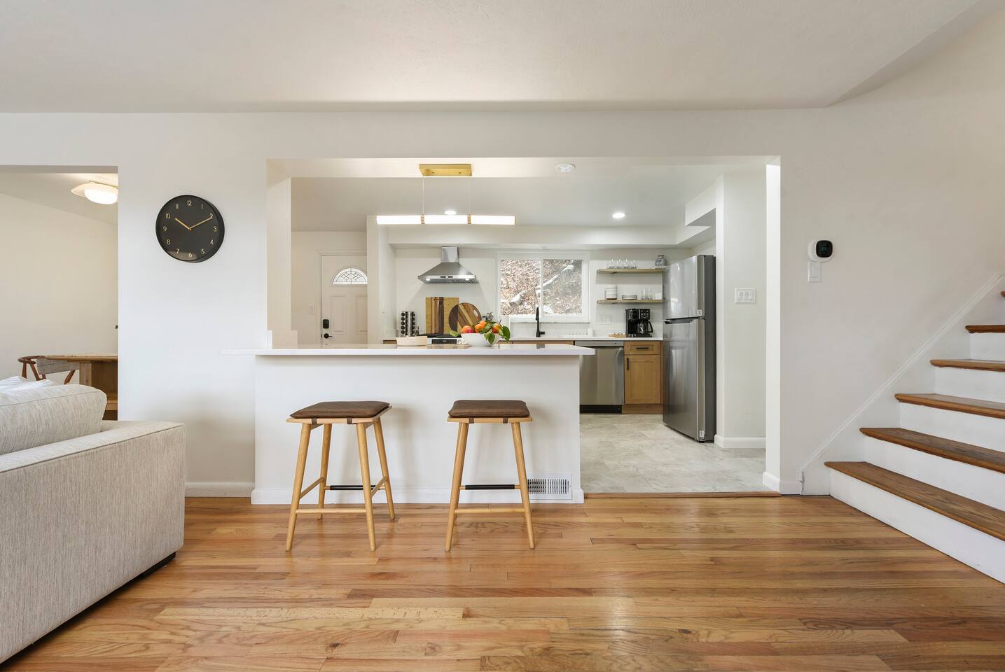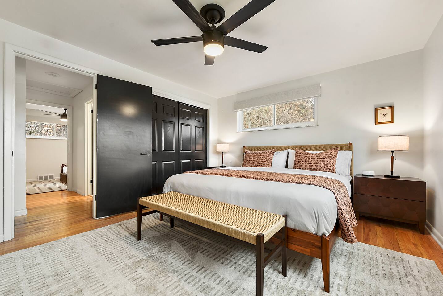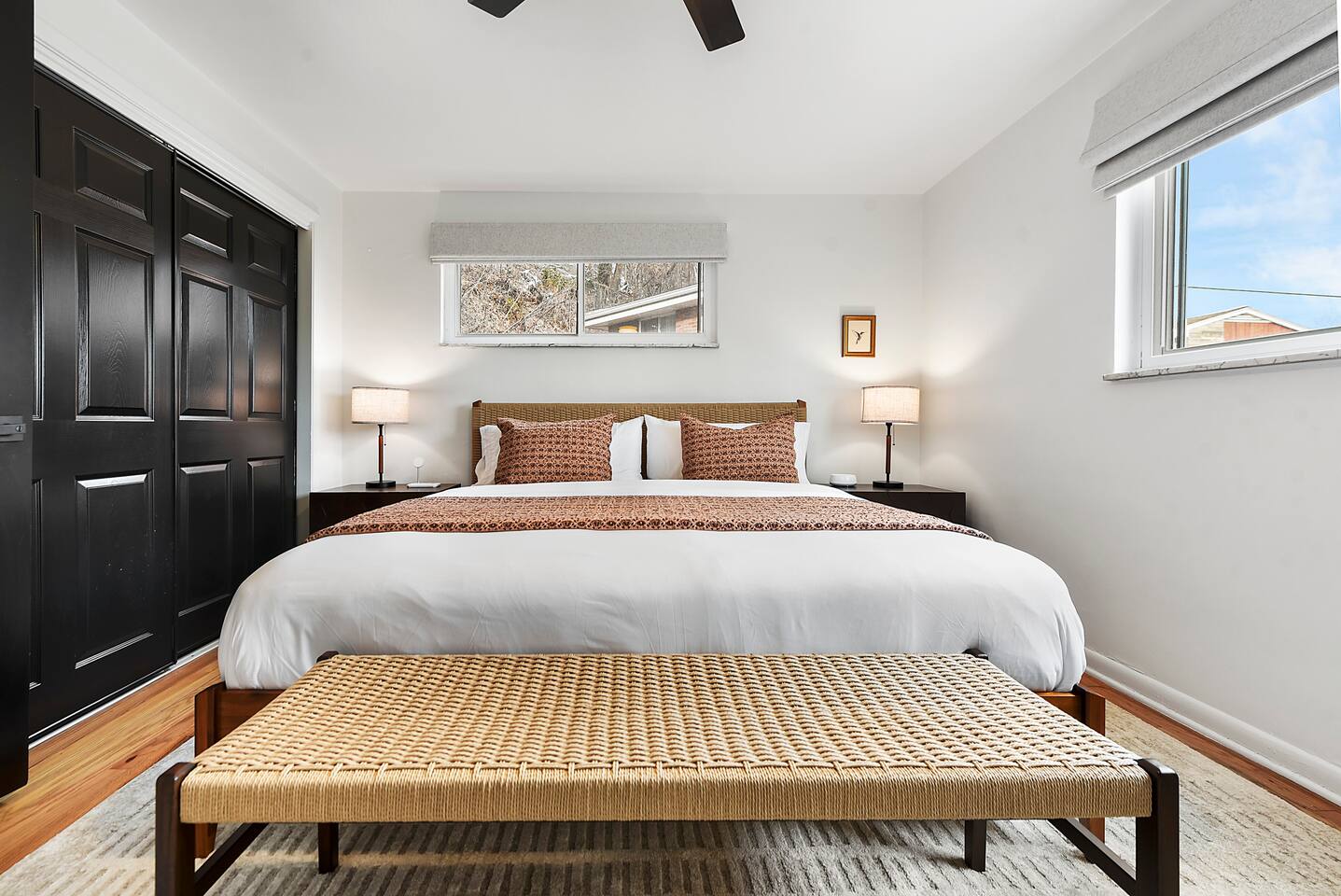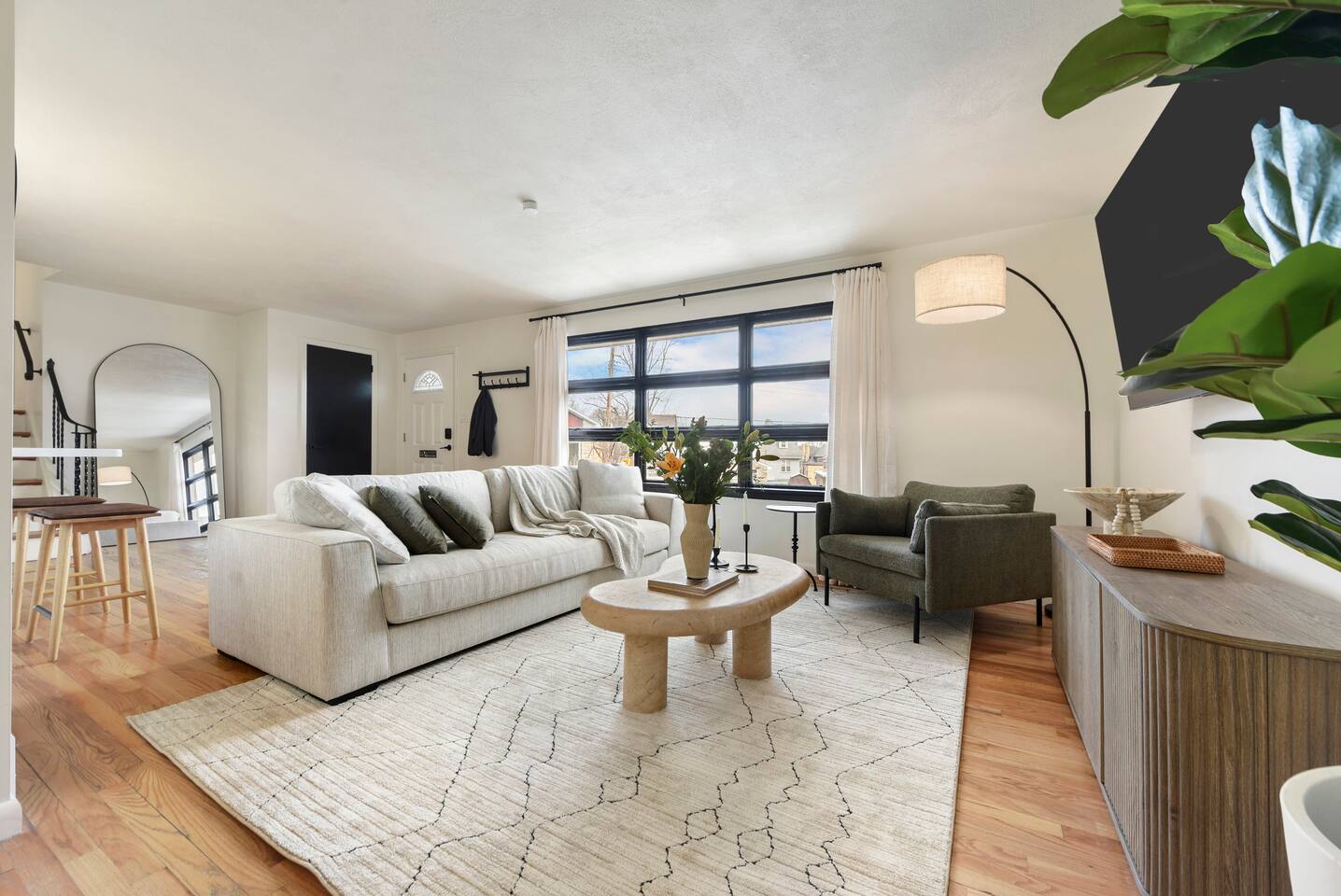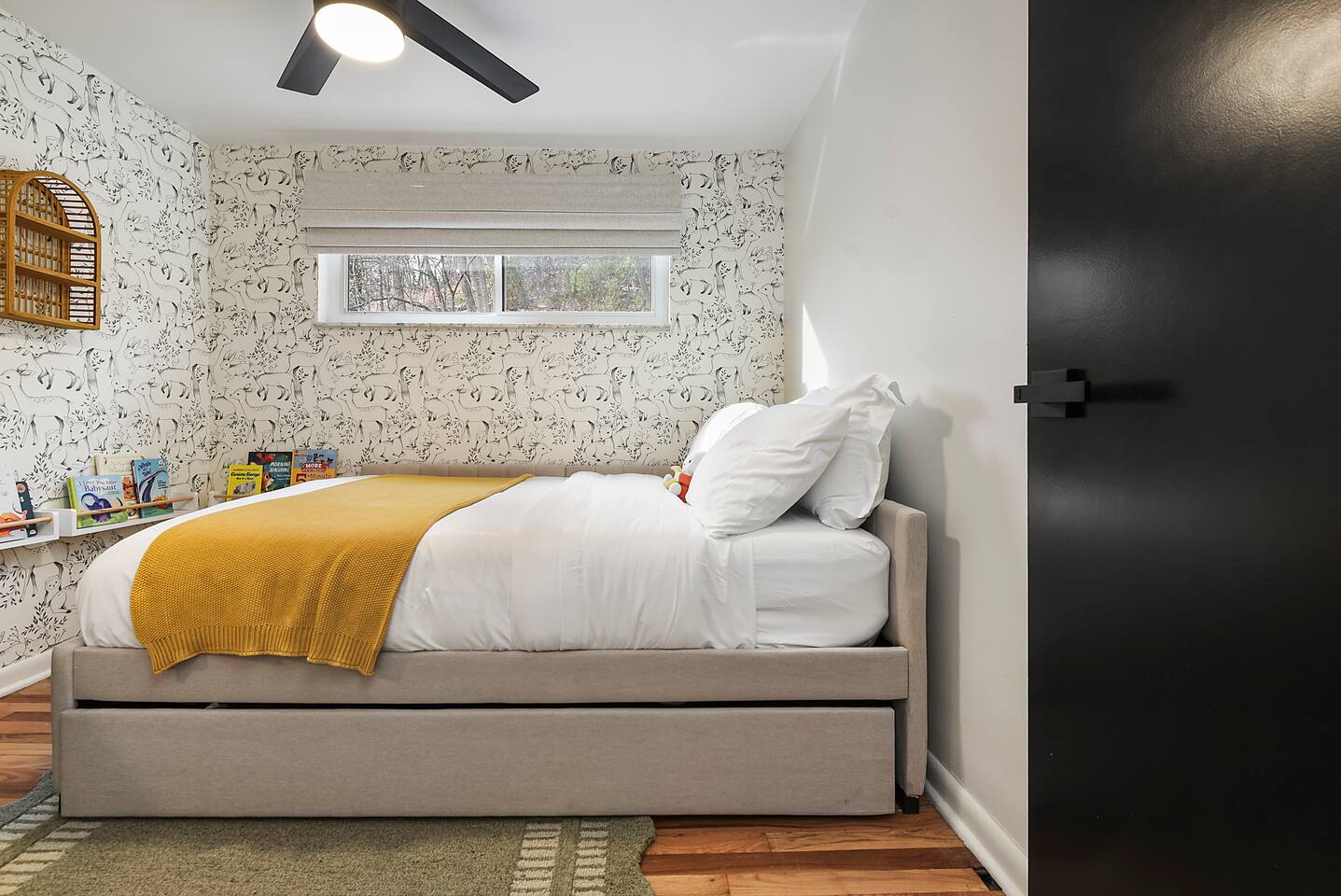 Renovated 4BR/2BA on a quiet East Liberty cul-de-sac—perfect for families, friends, and work trips. • Sleeps 8 (King + 2 Queens + daybed w/ trundle + sleeper sofa) with space to spread out. • Enjoy a finished basement game room + office (PS4, 75" 4k smart TV, standing desk + 32” monitor), a fully stocked kitchen ready for cooking. • Enjoy an easy arrival with self check-in, private garage parking, Level 2 EV charging, and 1 gig-speed internet.