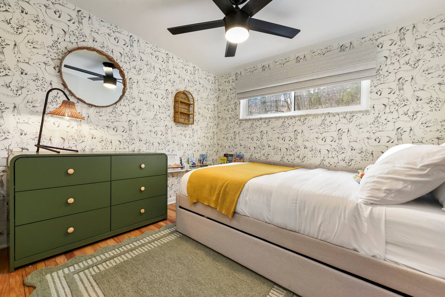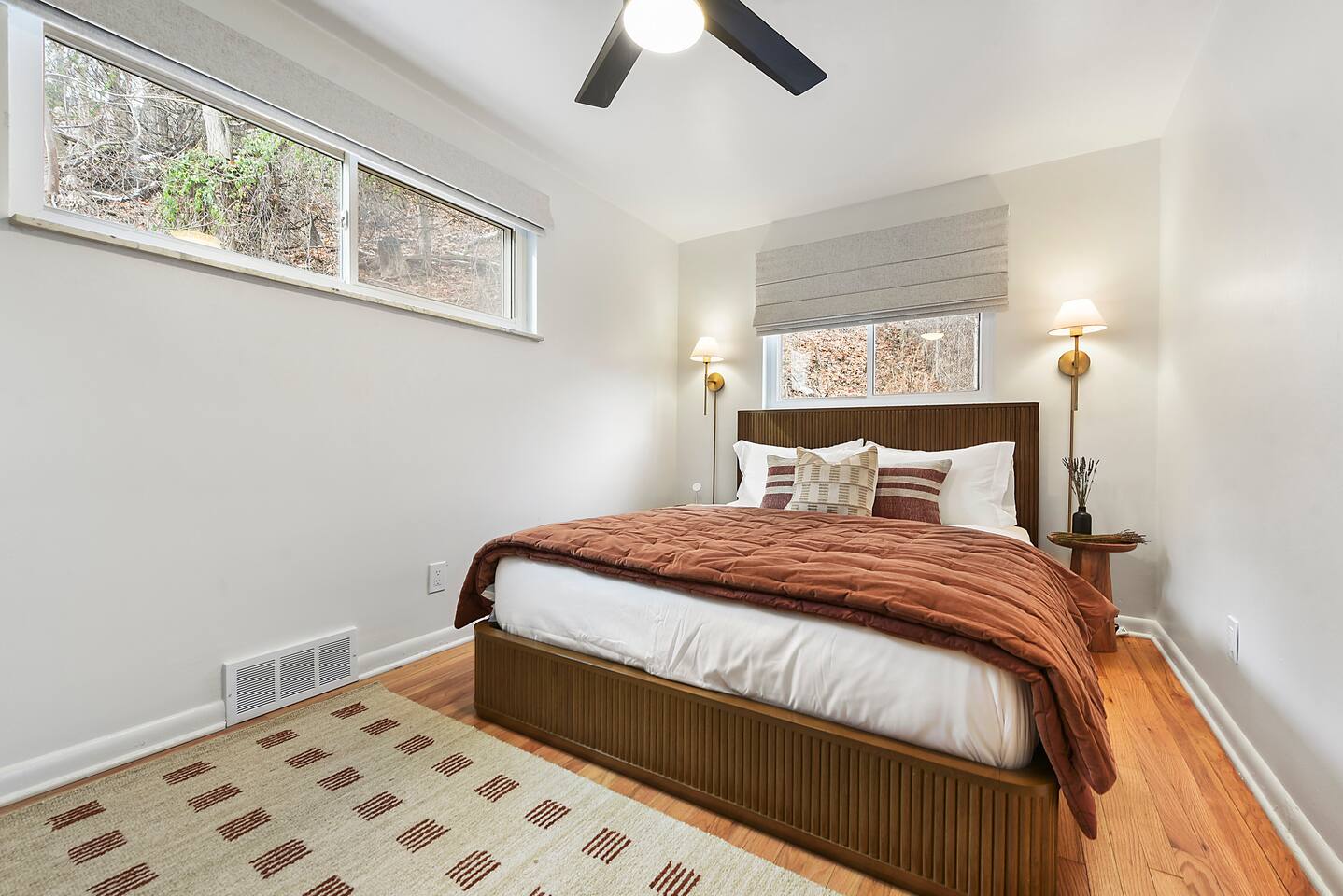 ❤️ Why guests love it • Work + play setup: dedicated workspace (32” high refresh monitor) + game room (PS4 + 4 controllers) in the basement • 1gig internet plan (up to 1000 Mbps down / 100 Mbps up) • Big-screen downtime: 75" + 65" 4K smart TVs (Max, Hulu, Disney+) • Group-ready: dining for 8 + practical kitchen tools (Instant Pot, etc.) • Easy logistics: keyless entry + garage + EV charger (L2 J1772 plug) • Calm at night: tucked-away quiet cul-de-sac 🛌 Sleeping layout (Sleeps 8) • Bedroom 1: King + dedicated desk • Bedroom 2: Queen • Bedroom 3: Full daybed + twin trundle • Bedroom 4: Queen • Basement: Sleeper sofa 🛁 Bathrooms • 2 full baths: soaking tub, walk-in rain shower • Bidets + essentials provided Main floor: bright open-concept living + dining + fully equipped kitchen—easy to cook, eat, and hang out together (65” 4k smart TV). Lower level: finished basement with game room + office (PS4, 75" 4k smart TV, pull-out sofa, standing desk, ergonomic chair + 32” monitor). 🚗 Parking • Garage: 1 space • Private driveway: 1 space + free street parking nearby • EV charger: Level 2 J1772 plug 🍴 Kitchen + dining • 5-burner gas range, fridge, dishwasher, Instant Pot, kettle, coffee setup (Keurig + drip) • Dining table seats 8 📺 Entertainment • 75" + 65" TCL 4K Mini LED Google TVs • Included streaming: Max (HBO), Hulu, and Disney+ (ready to watch) 🎮 Family-friendly • In-unit washer/dryer • Children’s dinnerware + kids’ books + board games + PS4 🛜 Wi-Fi • 1 Gig internet plan (up to 1000 Mbps down / 100 Mbps up) — great for streaming + video calls 🗺️ Location Conveniently close to all of Pittsburgh’s favorites: • Whole Foods → 0.5 miles • Penn Ave Restaurants → 0.6 miles • Duolingo HQ → 0.6 miles • Target → 0.8 miles • Bakery Square (Google, Phillips) → 1.3 miles • Carnegie Mellon University → 2 miles • University of Pittsburgh → 2.4 miles • Strip District → 3 miles • Acrisure Stadium & Point State Park → 5 miles • Andy Warhol Museum → 5 miles